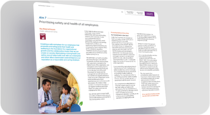 TRANSFORMING TRANSFORMING TRANSFORMING SUSTAINABILITY REPORT FY 2023 COMMUNITIES THE PLANET THE WORKPLACE Aim 7 Prioritising safety and health of all employees Key Material Issues It also helps to attract and retain Promoting Safety at Every Step international best practices. The Health, safety & well-being employees, foster positive Our Commitment to Zero Harm performance against these standards relationships with local communities, is internally audited in keeping with the investors, and customers. A safe Under Aim 7 our focus on occupational Vedanta Sustainability Assurance work environment reduces health and safety is driven by the goal of Programme (VSAP). absenteeism and improves overall establishing a zero-harm work productivity, leading to cost savings. environment. As a mining major, we are Taking a no-compromise approach Unsafe work conditions can fully cognizant of the inherent risks that towards our safety commitment, we Creating a safe workplace for our employees that significantly impact productivity and, accompany the act of mining and we have also integrated the highest promotes and safeguards their health and consequently, have a negative effect have built in processes and checks and international quality and occupational wellbeing is the foundation for organizational on the company's reputation. balances within the system that can health and safety parameters into our growth and the collaborative impact that we can .Therefore, ensuring the good health identify hazards early and mitigate or ways of working and control. and safety of our workforce is of the remove them. Our employees are duly create on society. Maintaining a strong health and highest priority for us. trained in the risks attached to their work All our operational facilities and sites safety record helps build trust with our employees and taught methods to act with utmost have obtained prestigious and other allied stakeholders and strengthens our We administer our health and safety caution and care, under all conditions. certifications like ISO 45001 and reputation as a responsible and caring employer. processes through a well-defined The implementation of Aim 7 is led by the OHSAS 18001. We are also aligned framework of policies and processes Safety Community of Practice across the with the guidelines set forth by the with supervisory oversight at the entire organization. International Council on Mining and highest levels of the organization, and Metals (ICMM), whereby we not only managerial control flowing down to In our overarching organizational vision of ensure that our operations are safe, the functional leadership levels and ‘Transforming for Good’ the Healthy and with all proactive safeguards in place, to the site, plant and office staff. Safety function has a central role to play but also environmentally sustainability. Procedures for hazard and risk for a ‘sustainable’ future can only be built management are well-defined and on the plinth of safety, health and The other aspect of our the workforce is regularly trained on wellbeing. This long-term vision informs comprehensive safety framework are these, along with independent audits our thinking around the Health and Safety the protocols that we observe to keep being carried out to check function, and our constant attempt is to our practices updated with the latest preparedness and conformance with benchmark it with the best in the world. advancements in the field of procedures. We employ a large occupational health and safety. We do number of contractors as a part of Our comprehensive safety framework this through regular assessments, our regular workforce and similar integrates several aspects to ensure audits, and through dedicated health and safety practices are top-order safety compliance and feedback mechanisms, learning from maintained for them. performance. We have implemented of industry used cases and evolving 17 safety performance standards and 20 national and international systems. Our ultimate goal is to keep health health and safety technical and and safety incidents at the minimum management standards. Currently, we are All our operational facilities and sites and to build, reinforce and maintain a in the process of updating these have ISO 45001 and OHSAS 18001 very strong safety culture. standards and aligning them with 85
