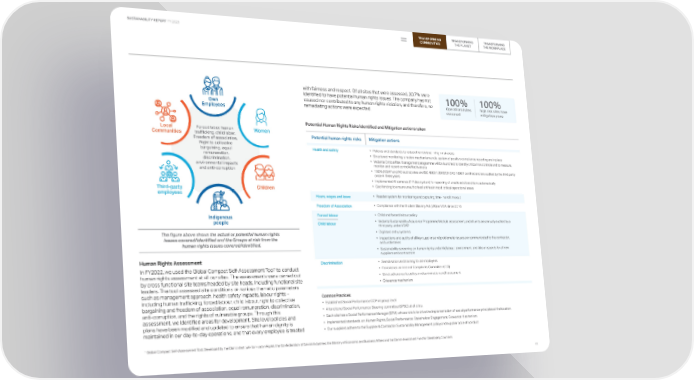 TRANSFORMING TRANSFORMING TRANSFORMING SUSTAINABILITY REPORT FY 2023 COMMUNITIES THE PLANET THE WORKPLACE with fairness and respect. Of all sites that were assessed, 30.7% were identified to have potential human rights issues. The company has not 100% 100% caused nor contributed to any human rights violation, and therefore, no Operational sites high risk sites have Own remediating actions were expected. assessed mitigation plans Employees Potential Human Rights Risks Identified and Mitigation actions taken Local Forced labor, human Women Communities trafficking, child labor, Potential human rights risks Mitigation actions Freedom of association, Right to collective bargaining, equal Health and safety • Policies and standards to reduce the risk level in high-risk areas. remuneration, • Structured monitoring, a review mechanism and a system of positive compliance reporting are in place discrimination, • Vedanta Critical Risk Management programme will be launched to identify critical risk controls and to measure, environmental impacts monitor and report control effectiveness and anti-corruption • 100% (VSAP and AO audits) sites are ISO 45001:2018/OHSAS 18001 certified and are audited by the third party once in three years • Implemented AI cameras (T-Pulse system) for reporting of unsafe acts/conditions automatically Third-party Children • Geo fencing to ensure unauthorised entries in most critical operational areas employees Hours, wages and leave • Roaster system for monitoring and capturing time-in and time out Freedom of Association • Compliance with the Modern Slavery Act (UK) or MSA since 2016 Indigenous Forced labour • Child and forced labour policy people Child labour • Vedanta Sustainability Assurance Programme Module assessment, and all units are annually audited by a third party under VSAP The figure above shows the actual or potential human rights • Digitised entry systems issues covered/identified and the Groups at risk from the • Inspections and audits of all key suppliers and problematic issues are communicated to the contractor, human rights issues covered/identified. and undertakes • Sustainability screening on human rights and child labour, environment, and labour aspects for all new suppliers and contractors Human Rights Assessment Discrimination • Sensitisation and training for all employees 1 to conduct • Established an Internal Complaints Committee (ICC) In FY2022, we used the Global Compact Self-Assessment Tool human rights assessment at all our sites. The assessments were carried out • Strict adherence to policy on discrimination and harassment by cross functional site teams headed by site heads, including functional site • Grievance mechanism leaders. The tool assessed site conditions on various thematic parameters such as management approach, health safety impacts, labour rights – Common Practices: including human trafficking, forced labour, child labour, right to collective bargaining and freedom of association, equal remuneration, discrimination, • Established Social Performance COP at group level anti-corruption, and the rights of vulnerable groups. Through this • A functional Social Performance Steering committee (SPSC) at all sites. assessment, we identified areas for development. Site level policies and • Each site has a Social Performance Manager (SPM), whose role is to drive the implementation of social performance principles at the location. plans have been modified and updated to ensure that human dignity is • Implemented standards on: Human Rights, Social Performance, Stakeholder Engagement, Grievance Mechanism maintained in our day-to-day operations, and that every employee is treated • Our suppliers adhere to the Supplier & Contractor Sustainability Management policy and supplier code of conduct 1 Global Compact Self-Assessment Tool. Developed by the Danish Institute for Human Rights, the Confederation of Danish Industries, the Ministry of Economic and Business Affairs and the Danish Investment Fund for Developing Countries 45