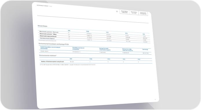 TRANSFORMING TRANSFORMING TRANSFORMING SUSTAINABILITY REPORT FY 2023 COMMUNITIES THE PLANET THE WORKPLACE Mineral Waste Unit FY20 FY21 FY22 FY23 Mineral waste generated – Waste rock MT 14,135,872 2,251,677 100,921 110,427 Mineral waste generated - Tailings MT 15,059,116 18,710,338 18,667,036 26,442,334 Mineral waste repurposed/reused MT 14,135,872 2,251,677 204,840 318,264 Total mineral waste disposed MT 15,059,116 18,710,338 18,571,046 26,234,497 Geochemically reactive mineral waste: 0% Environmental Investment and Savings (FY23) Capital Expenditure on environment Operating expenses on Savings from water Savings from energy Total Savings environment environment conservation programs conservation programs ₹5,469,143,522 ₹13,563,742,012 ₹ 144,418,432 ₹ 4,668,899,248 ₹4,813,317,680 Environmental violations* Unit FY20 FY21 FY22 FY23 Number of Violations reported during the year Number 0 0 0 0 In FY23, NGT imposed a fine of INR 250 million on Vedanta Aluminium - Lanjigarh. The ruling was on a case that had been filed in Nov 2015. 126