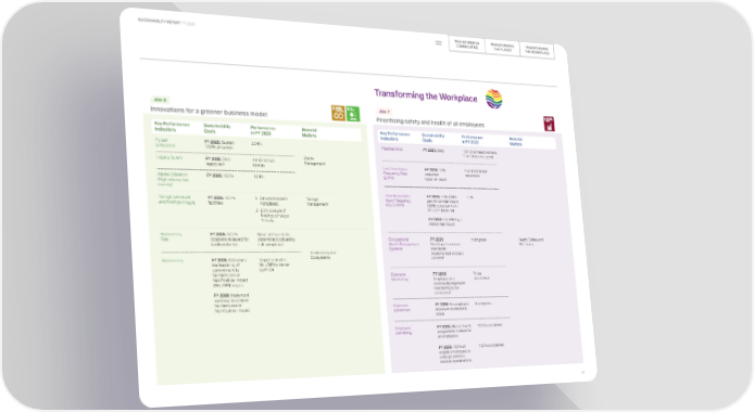 TRANSFORMING TRANSFORMING TRANSFORMING SUSTAINABILITY REPORT FY 2023 COMMUNITIES THE PLANET THE WORKPLACE Transforming the Workplace Aim 6 Aim 7 Innovations for a greener business model Prioritising safety and health of all employees Key Performance Sustainability Performance Material Key Performance Sustainability Performance Material Indicators Goals in FY 2023 Matters Indicators Goals in FY 2023 Matters Fly ash FY 2025: Sustain 204% Fatalities (No.) FY 2025: Zero 13 (12 contract workers, (utilisation) 100% utilisation 1 full-time employee) Legacy fly ash FY 2030: Zero 44.42 million Waste legacy ash tonnes Management Lost Time Injury FY 2025: 10% 0.52 (10.3% YoY Frequency Rate reduction reduction) Waste Utilisation FY 2025: 100% 164% (LTIFR) (year-on-year) (High volume, low toxicity) Total Recordable FY 2025: 0.98 TRIFR 1.20 Tailings dam audit FY 2025: 100% 1. Site assessment Tailings Injury Frequency per million man hours and findings closure facilities completed. Management Rate (TRIFR) (30% reduction from 2. 60% closure of FY 2021 baseline) findings of stage FY 2030: 0.8 TRIFR per 1 study million man hours Biodiversity FY 2025: 100% Baseline studies to Risk locations reviewed for determine biodiversity Occupational FY 2025: In progress Health, Safety and biodiversity risk risk completed Health Management Health performance Well-being Systems standards Biodiversity and implemented and part Biodiversity FY 2025: Determine Target related to Ecosystems of VSAP the feasibility of NNL/NPI to be set commitment to by FY24 No-Net-Loss or Exposure FY 2025: To be Net-Positive-Impact Monitoring Employee and undertaken (NNL/NPI) targets community exposure FY 2030: Implement monitoring to be roadmap to achieve completed No-Net-Loss or Net-Positive-Impact Exposure FY 2030: No employee In progress prevention exposure to red zone areas Employee FY 2025: Mental health 100% completed well-being programme in place for all employees FY 2025: 100% of 100% completed eligible employees to undergo periodic medical examinations 34