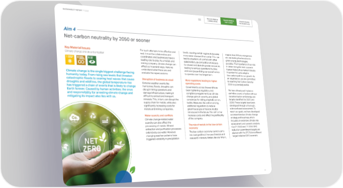TRANSFORMING TRANSFORMING TRANSFORMING SUSTAINABILITY REPORT FY 2023 COMMUNITIES THE PLANET THE WORKPLACE Aim 4 Net-carbon neutrality by 2050 or sooner Key Material Issues For such attempts to be effective and levels, causing certain regions to become copper, lead, lithium, manganese Climate change and decarbonisation real, it must be collaborative and more water stressed than earlier. This can etc are making the transition to coordinated, and businesses have a lead to situations of conflict with other green energy technologies leading role to play. As a metals and stakeholders, as competition increases possible. The importance of our role mining company, climate change can for shared and dwindling water resources, in determining the next course in affect us in several ways. Here we leading to serious operational hurdles human history thus makes it doubly understand what these are and and even jeopardising our social licence important for us to adopt a Climate change is the single biggest challenge facing evaluate the repercussions: to operate over the longer term. low-carbon path to our growth. As humanity today. From rising sea levels that threaten an organization, we are committed catastrophic floods to searing heat waves that cause Disruption of business as usual More regulations leading to higher to reaching Net Carbon Zero by droughts and wildfires, the global temperature rise Extreme weather events like operating costs 2050 or potentially earlier. has triggered a chain of events that is likely to change hurricanes, floods, droughts can Governments across the world have Earth forever. Caused by human activities, the onus disrupt mining operations and been tightening regulatory and We have already put in place a and responsibility for arresting climate change and damage infrastructure, making it compliance requirements as climate definitive course of action with our mitigating its impact also lies with us. difficult to extract and transport change gains in severity, and global decarbonisation and energy use minerals. This, in turn, can disrupt the consensus for taking emphatic action, targets identified for 2025 and 2030. These targets have been supply chain for metals, while also builds. Measures like carbon pricing, significantly increasing costs for additional regulations to reduce developed through a thorough, metals and mining companies. greenhouse gas emissions maybe science-based assessment. To introduced in the future. This will further reach our goals, we have developed Water scarcity and conflicts increase costs and affect the profitability a comprehensive climate change Climate change-related water of the company. strategy and roadmap, which scarcity can also affect the includes an extensive climate risk The role of metals in the low-carbon assessment and scenario analysis. processing of metals. Mineral extraction and purification processes economy Our FY 2030 and FY 2050 GHG extensively use water. However, The low-carbon economy cannot come reduction commitment targets are changing weather patterns have into being without the use of metals and aligned with the 2C Science Based Target Initiative (SBTi) scenario. triggered variability in precipitation rare earth minerals. Metals like aluminium, 54