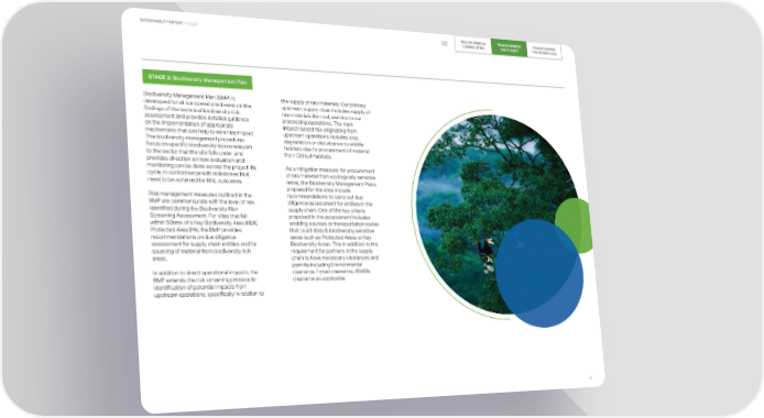 TRANSFORMING TRANSFORMING TRANSFORMING SUSTAINABILITY REPORT FY 2023 COMMUNITIES THE PLANET THE WORKPLACE STAGE 3: Biodiversity Management Plan Biodiversity Management Plan (BMP) is the supply of raw materials. Our primary developed for all our operations based on the upstream supply chain includes supply of findings of the technical biodiversity risk raw materials like coal, alumina to our assessment and provides detailed guidance processing operations. The main on the implementation of appropriate impact-based risk originating from mechanisms that can help to minimize impact. upstream operations includes loss, The biodiversity management procedures degradation or disturbance to wildlife focus on specific biodiversity topics relevant habitats due to procurement of material to the sector that the site falls under, and from Critical Habitats. provides direction on how evaluation and monitoring can be done across the project life As a mitigation measure, for procurement cycle, in conformance with milestones that of raw material from ecologically sensitive need to be achieved for NNL outcomes. areas, the Biodiversity Management Plans prepared for the sites include Risk management measures outlined in the recommendations to carry out due BMP are commensurate with the level of risk diligence assessment for entities in the identified during the Biodiversity Risk supply chain. One of the key criteria Screening Assessment. For sites that fall proposed in the assessment includes within 50kms of a Key Biodiversity Area (KBA), avoiding sources or transportation routes Protected Area (PA), the BMP provides that could disturb biodiversity sensitive recommendations on due diligence areas such as Protected Areas or Key assessment for supply chain entities and for Biodiversity Areas. This in addition to the sourcing of material from biodiversity rich requirement for partners in the supply areas. chain to have necessary clearances and permits including Environmental In addition to direct operational impacts, the clearance, Forest clearance, Wildlife BMP extends the risk screening process to clearance as applicable. identification of potential impacts from upstream operations, specifically in relation to 79