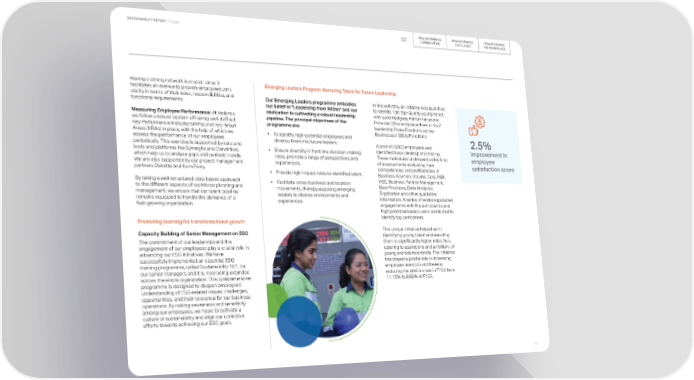 TRANSFORMING TRANSFORMING TRANSFORMING SUSTAINABILITY REPORT FY 2023 COMMUNITIES THE PLANET THE WORKPLACE Having a strong network is crucial, since it Emerging Leaders Program: Nurturing Talent for Future Leadership facilitates an avenue to provide employees with clarity in terms of their roles, responsibilities, and Our Emerging Leaders programme embodies In line with this, an initiative was launched functional requirements. our belief in "Leadership from Within" and our to identify 100 Top-Quality young minds Measuring Employee Performance: At Vedanta, dedication to cultivating a robust leadership with solid Pedigree, Performance and we follow a robust system of having well-defined pipeline. The principal objectives of the Potential (3Ps) and place them in No.2 Key Performance Indicators(KPIs) and Key Result programme are: leadership Roles/Positions across Areas (KRAs) in place, with the help of which we Businesses/ SBUs/Functions • To identify high-potential employees and assess the performance of our employees develop them into future leaders. periodically. This exercise is supported by data and A pool of 3,000 employees was 2.5% identified basis desktop shortlisting. improvement in tools and platforms like Synergita and Darwinbox, • Ensure diversity in front-line decision-making which help us to analyse gaps and periodic trends. roles, promote a range of perspectives and These individuals underwent varied kind employee We are also supported by our project management experiences. of assessments evaluating their satisfaction score partners Deloitte and Korn Ferry. competencies and proficiencies in • Provide high-impact roles to identified talent. Business Acumen, Volume, Cost, R&R, By taking a well-structured, data based approach HSE, Business Partner Management, to the different aspects of workforce planning and • Facilitate cross-business and location Best Practices, Data Analytics, management, we ensure that our talent pipeline movements, thereby exposing emerging Digitization and other qualitative remains equipped to handle the demands of a leaders to diverse environments and information. A series of workshops/panel fast-growing organization. experiences. engagements with the participants and high potential leaders were conducted to identify top performers. Promoting learning for transformational growth Capacity Building of Senior Management on ESG This unique initiative helped us in identifying young talent and elevating The commitment of our leadership and the them to significantly higher roles thus, engagement of our employees play a crucial role in catering to aspirations and ambitions of advancing our ESG initiatives. We have young and talented minds. The initiative successfully implemented an essential ESG has played a pivotal role in increasing training programme, called Sustainability 101, for employee retention and thereby our senior managers and it is now being extended reducing the attrition rate in FY22 from across the entire organization. This comprehensive 11.15% to 8.86% in FY23. programme is designed to deepen employees’ understanding of ESG-related issues, challenges, opportunities, and their relevance for our business operations. By raising awareness and sensitivity among our employees, we hope to cultivate a culture of sustainability and align our collective efforts towards achieving our ESG goals. 111