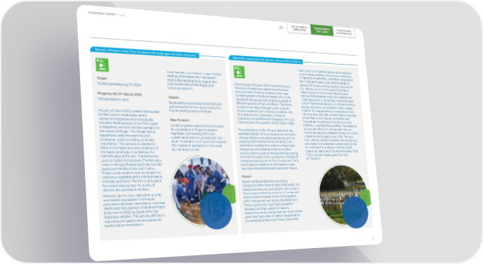 TRANSFORMING TRANSFORMING TRANSFORMING SUSTAINABILITY REPORT FY 2023 COMMUNITIES THE PLANET THE WORKPLACE Revival of Khejari in the Thar ecosystem through agro-forestry measures Manmade mangroves and species conservation at Ravva right direction.These luxuriantly, dense wetlands support approximately 150 species of avifauna, Cairn has also committed to plant 15,000 52 species of butterflies, more than 5 species of mammals and snakes each, and hundreds of saplings of Khejari in the Thar desert species of insects, beetles, spiders. Species like Target region, thereby helping to support the Over the past 20 years, Cairn has transformed local biodiversity of this fragile and 56 acres of waste land adjoining its Ravva oil the Fishing Cat, Smooth coated Otter, Black 15,000 plantations by FY 2025 unique ecosystem. Tailed Godwit, Painted Stork, Black-headed and gas field in Krishna-Godavari basin near Ibis,Spot Billed Pelican, which are classified as Surasaniyanam in Andhra Pradesh, into a lush ‘nearthreatened’ or ‘vulnerable’ in the IUCN Red Progress till 31st March 2023 Impact spread of mangroves that hosts thousands of 300 plantations done different species of flora and fauna. The Ravva List of Threatened Species, are all found in these Biodiversity conservation and livelihood oil field on the Bay of Bengal coast, is a joint mangroves, which provide them with a natural generation for farmers by providing the habitat. The disappearance of mangroves from venture between Cairn Oil & Gas-Vedanta Ltd, higher yielding variety of Khejari. India’s and south Asia’s coastal regions have also As part of Cairn’s ESG commitment toward Oil & Natural Gas Corporation, Videocon meant that a lot of aquatic, amphibian and No Net Loss to biodiversity and to Industries Ltd and Ravva Oil Singapore Pvt. Ltd. tropical rain forest-based species have lost conserve indigenous and ecologically Way Forward Cairn became the operator of this field in 1996. habitats, a gap that Ravva is filling. The wetlands sensitive floral species of the Thar region Cairn’s long term objective is to increase are also enriching the soil beneath. Revva’s in Rajasthan, we have initiated a project for The reclamation of the 56-acre stretch of dry the population of Khejari in western topsoil samples are estimated to have an organic the revival of Khejari. The Khejari tree is Rajasthan, by involving both local wasteland began as a social and environmental carbon content greater than 1.9%. The very Rajasthan’s state tree and has both communities and the government. Our change initiative and subsequently became an high-density canopy created by the mangroves ecological, social as well as, economic short- to medium-term goal is to increase ongoing CSR initiative for the JV entity. The also makes it an exemplary carbon sink. So far, importance. This species is adapted to the number of plantations in the areas reclamation entailed the creation of manmade the wetlands have stored more than 2000 thrive in the harsh and arid conditions of surrounding our site. mangroves and wetlands in the area which tonnes of carbon and sequestered nearly 7500 the region and helps in sustaining the houses Cairn’s crude oil storage and processing TCO e of greenhouse gases from the nutrient value of the soil. The leaves are terminal. As a part of the reclamation initiative, 8 2 used as fodder for livestock. The tree also mangrove species out of the 40-odd commonly atmosphere. helps in nitrogen fixation and improves the found species endemic to the eastern coast, quality and fertility of the soil. Further, have been transplanted and nurtured in Ravva. Khejari pods, locally known as sangari are used as a vegetable and is rich in proteins, Impact minerals and fibers. The tree is also used South and South East Asia are losing for medicinal purposes, for curing of mangroves at the fastest rates in the world. Yet ailments like asthma, bronchitis. mangroves have an even greater role to play in However, due to over-cultivation, grazing these regions which face some of the fiercest and habitat degradation the Khejari storms and hurricanes in the world, against population has been decreasing. Cairn has which mangroves can act as natural barriers. distributed 300 saplings of Shobha Khejari These regions also have high population to farmers in 2022 as a part of its Van densities and high carbon emissions Mahotsav initiative. This activity will help in trajectories, where mangroves can make a dent improving soil quality and also generate given their high rates of carbon sequestration. livelihoods for the farmers. Our wetlands at Ravva are thus a step in the 81