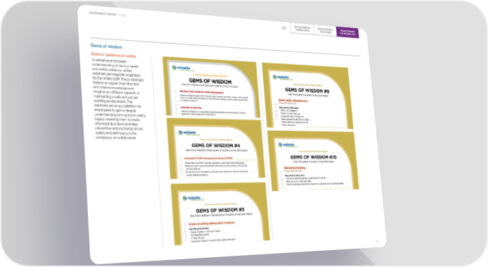 TRANSFORMING TRANSFORMING TRANSFORMING SUSTAINABILITY REPORT FY 2023 COMMUNITIES THE PLANET THE WORKPLACE Gems of wisdom Experts’ guidance on safety To enhance employees' understanding of various health and safety subjects, safety webinars are regularly organized for the entire staff. These webinars feature an expert from the field who shares knowledge and insights on different aspects of maintaining a safe and secure working environment. The webinars serve as a platform for employees to gain a deeper understanding of important safety topics, enabling them to make informed decisions and take preventive actions that promote safety and well-being in the workplace, on a daily basis. 92